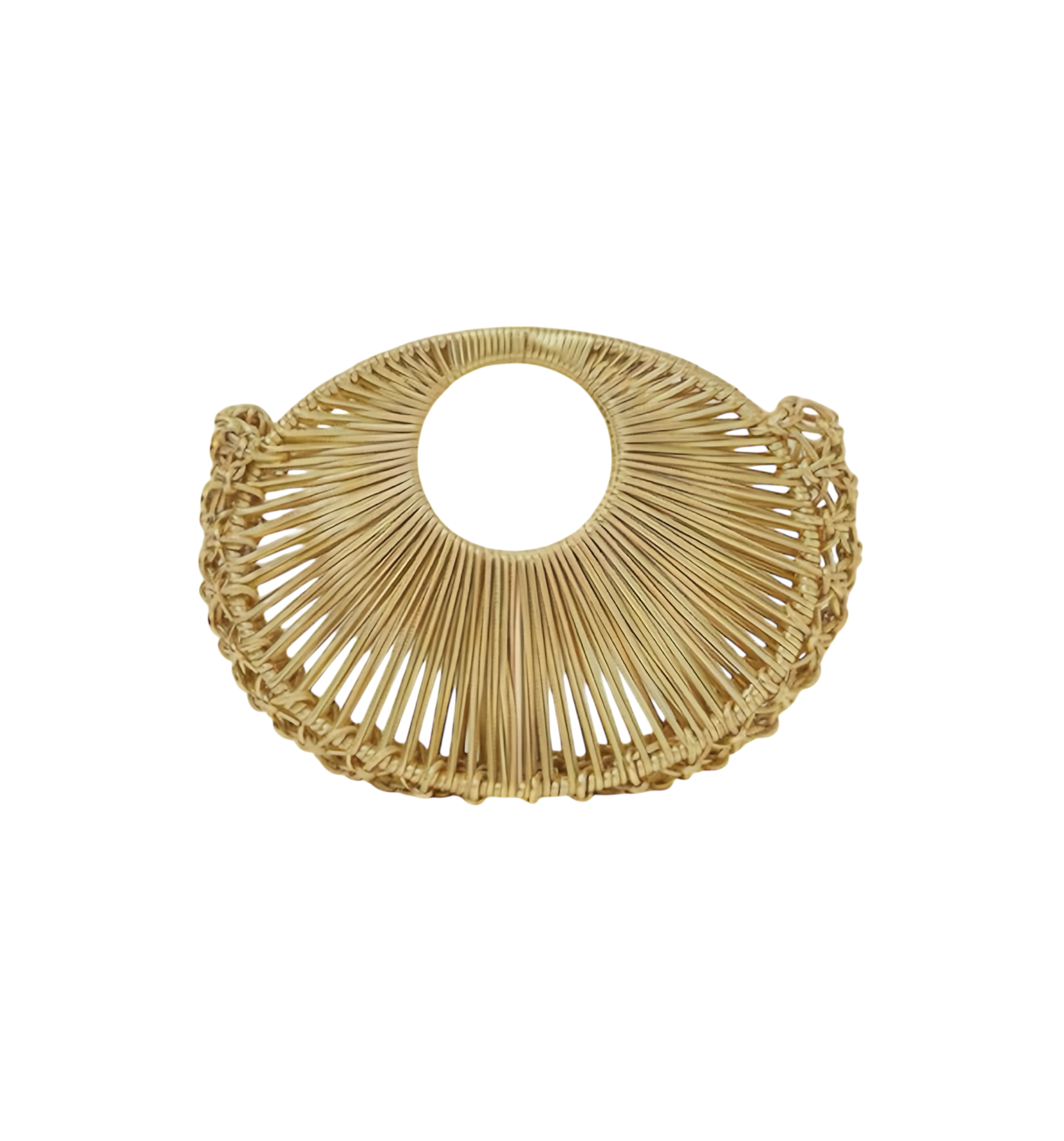 • Bolsa estruturada em palha natural, com design vazado em formato semicircular