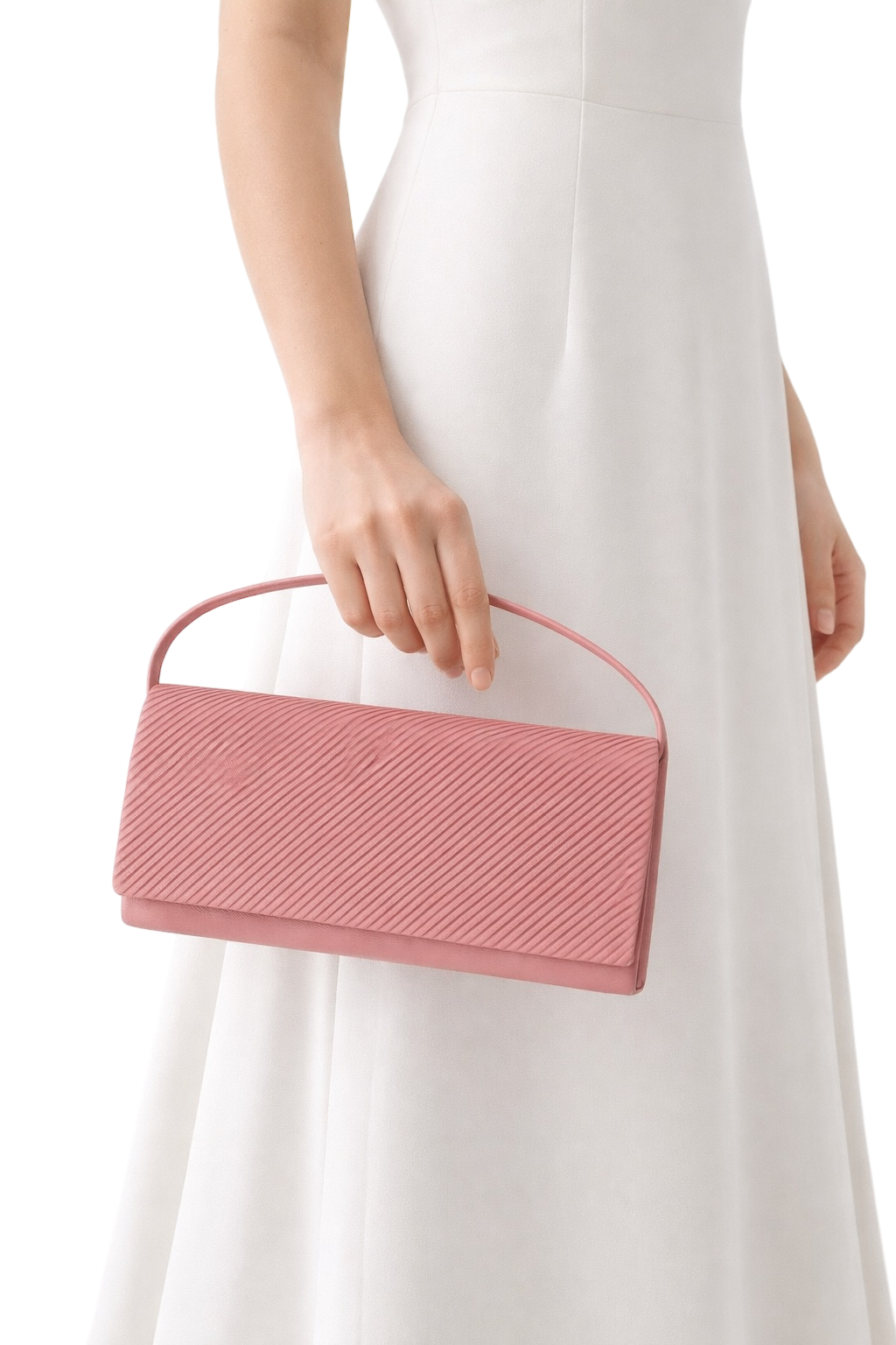 • Alça fina e revestida no mesmo material, ideal para segurar na mão ou apoiar no ombro