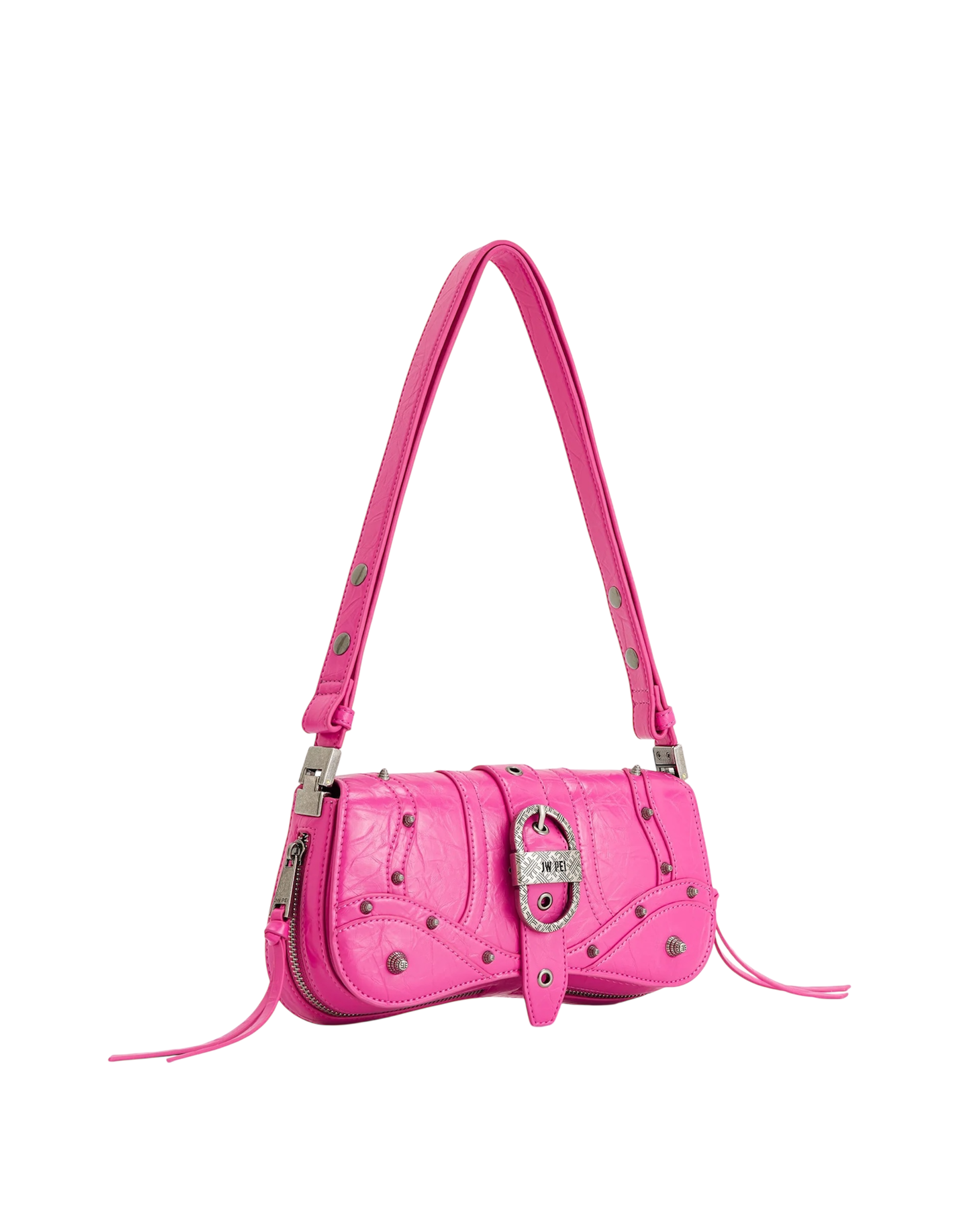 • Aplicações metálicas e costuras decorativas que reforçam o visual fashion