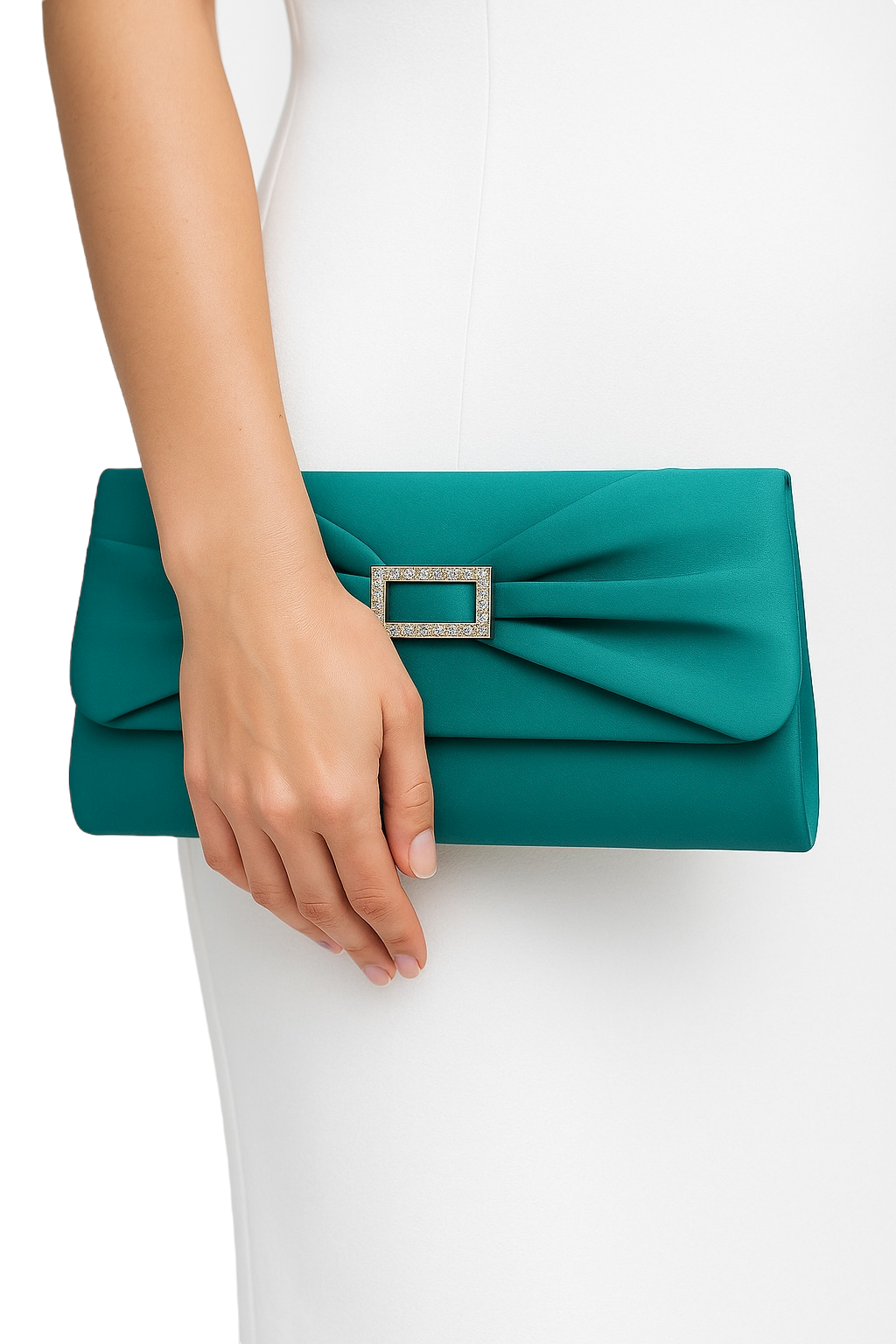 • Bolsa clutch em tecido levemente acetinado com toque suave e acabamento sofisticado