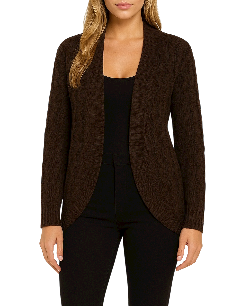 • Malha trançada encorpada, com textura em ondas, proporcionando conforto e um toque sofisticado