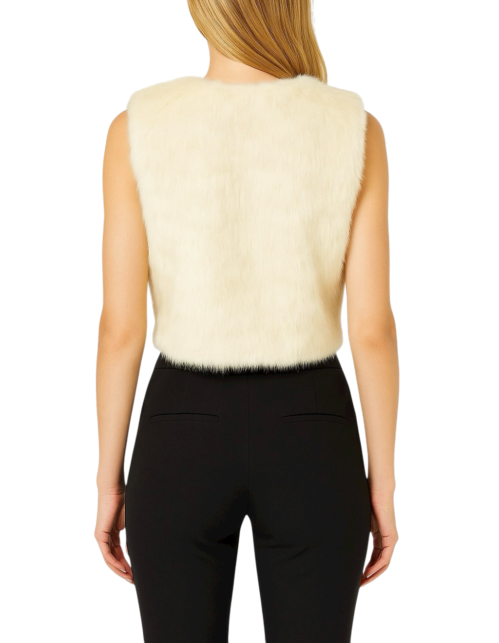 • Colete de pelo sintético com textura macia e volumosa, que adiciona sofisticação e aconchego ao look