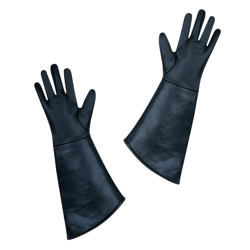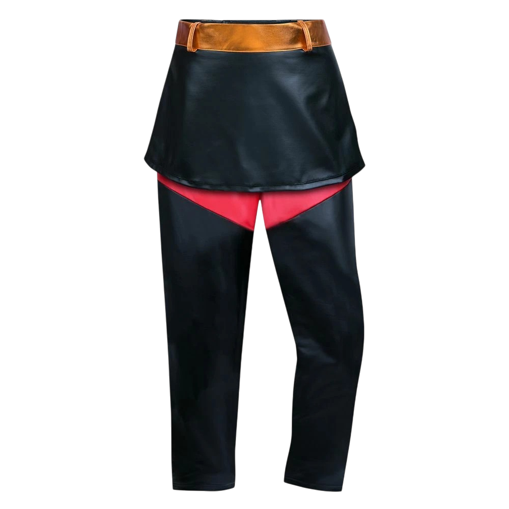 Conjunto com 4 peças: blusa, calça com saia, máscara e luvas.