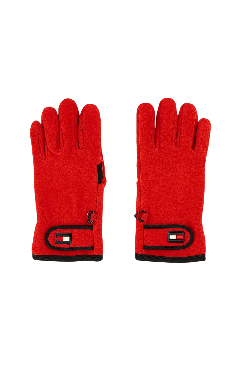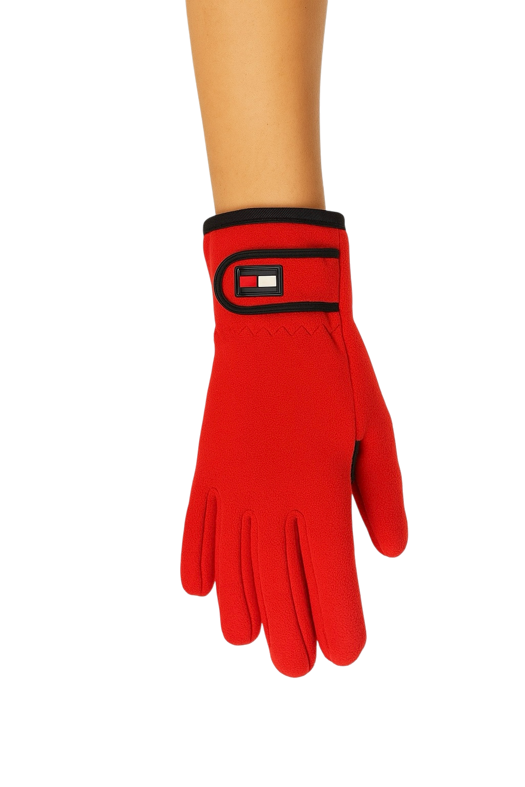 • Luvas em fleece vermelho com acabamento macio e térmico, ideais para dias frios
