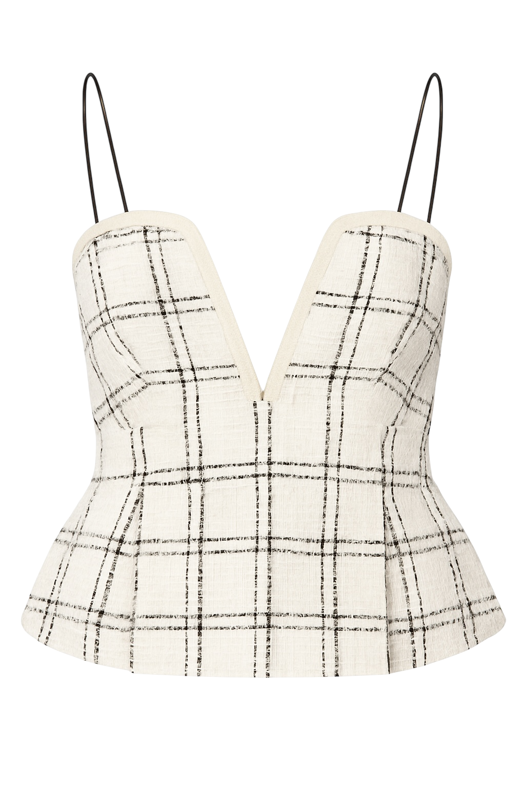 Cropped estruturado com decote em V profundo, valorizando o colo de forma sofisticada
