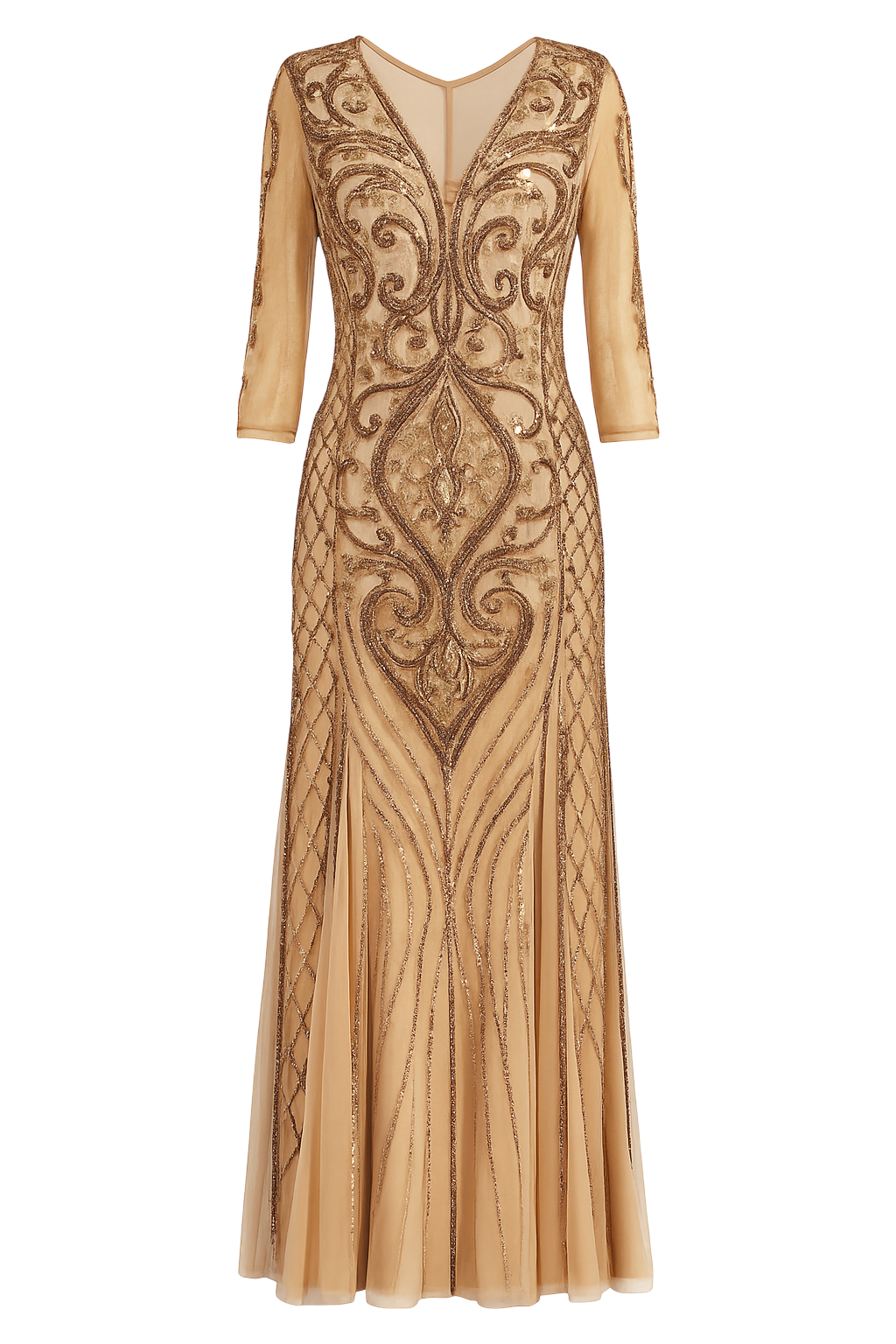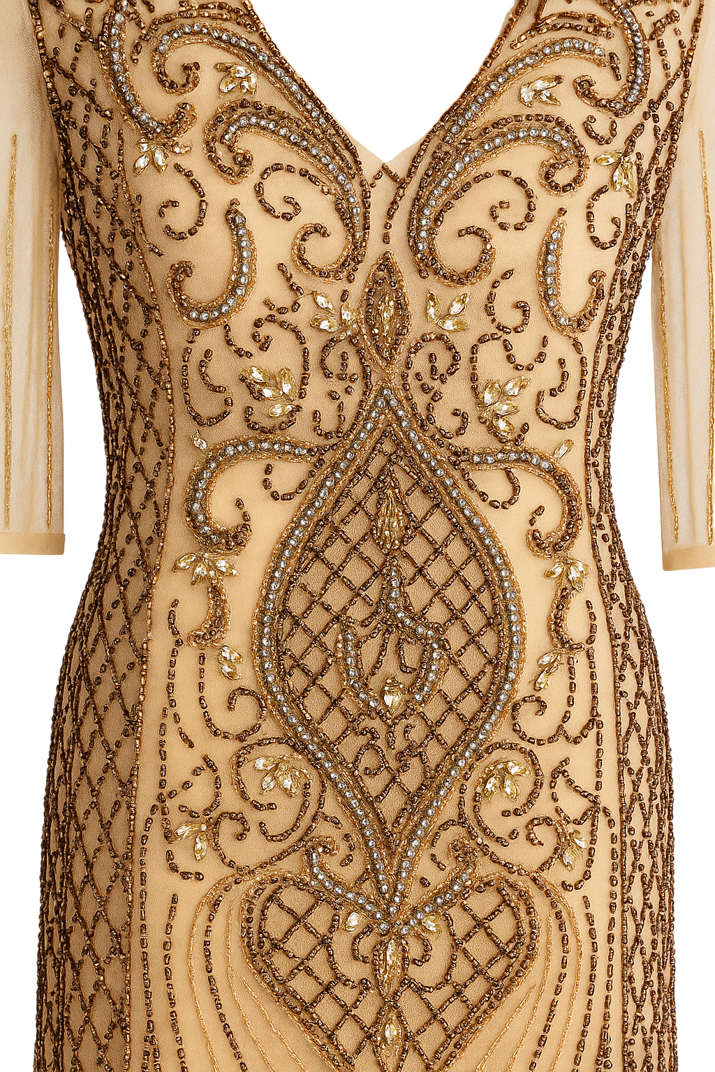 Cor: champagne/nude com pedrarias douradas e bronze.