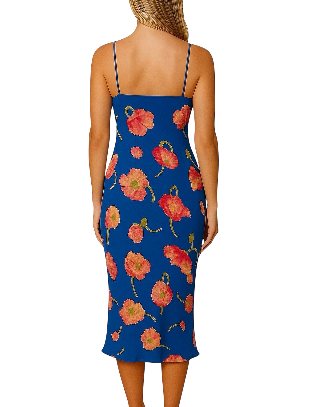 • Estampa floral sobre fundo azul vibrante, trazendo frescor e sofisticação à peça