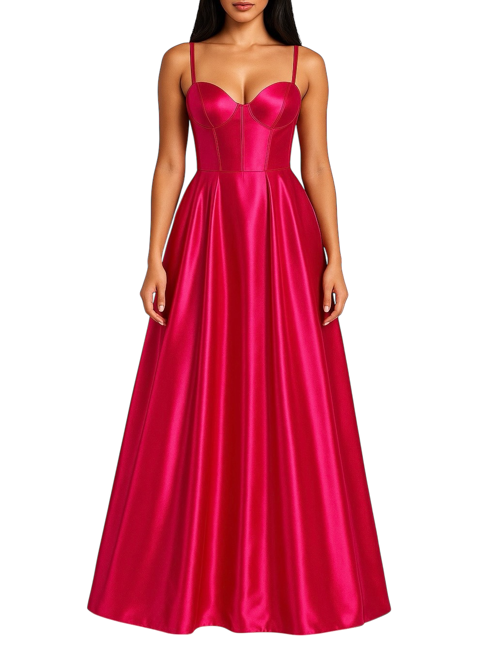 • Decote coração estruturado com bojo embutido, que valoriza o busto e o colo de forma elegante