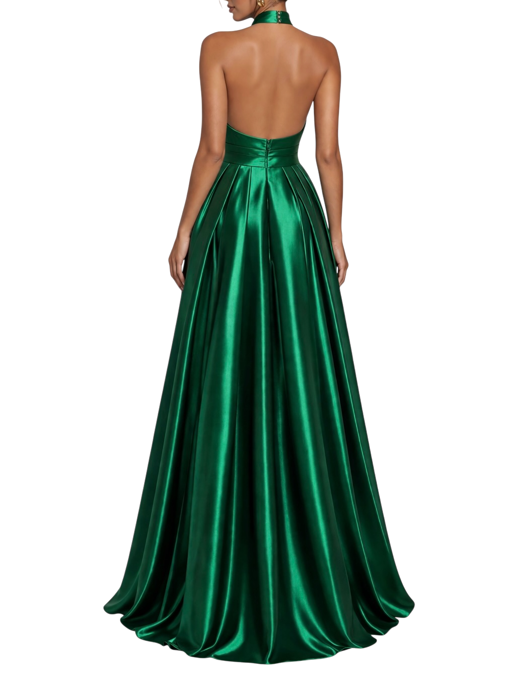 • Costas abertas com acabamento liso e fechamento discreto no pescoço, garantindo elegância minimalista